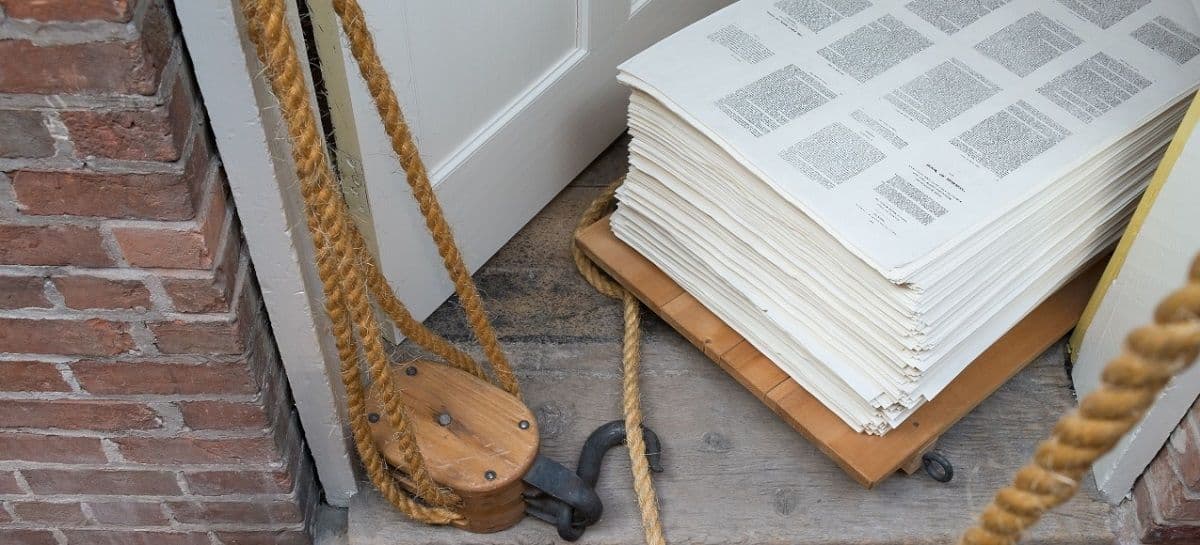 Quando ele lhe perguntou mais sobre esse livro, a mulher lhe disse que ele deveria ir a Palmyra, um lugar pelo qual acabara de passar, e encontrar um homem chamado Martin Harris.10 Thomas recordou mais tarde: ''Voltei para o oeste e encontrei Martin Harris na gráfica de Palmyra, onde as primeiras dezesseis páginas do Livro de Mórmon haviam sido impressas''.11 Thomas chegou à gráfica Grandin a tempo de pegar uma nova cópia das primeiras dezesseis páginas do Livro de Mórmon.12 Em 1829, era comum que as gráficas imprimissem uma página grande chamada "prova", que seria dobrada e cortada para criar 16 páginas do tamanho de um livro a serem encadernadas, e foi uma dessas folhas grandes que Thomas levou consigo da loja naquele dia.13