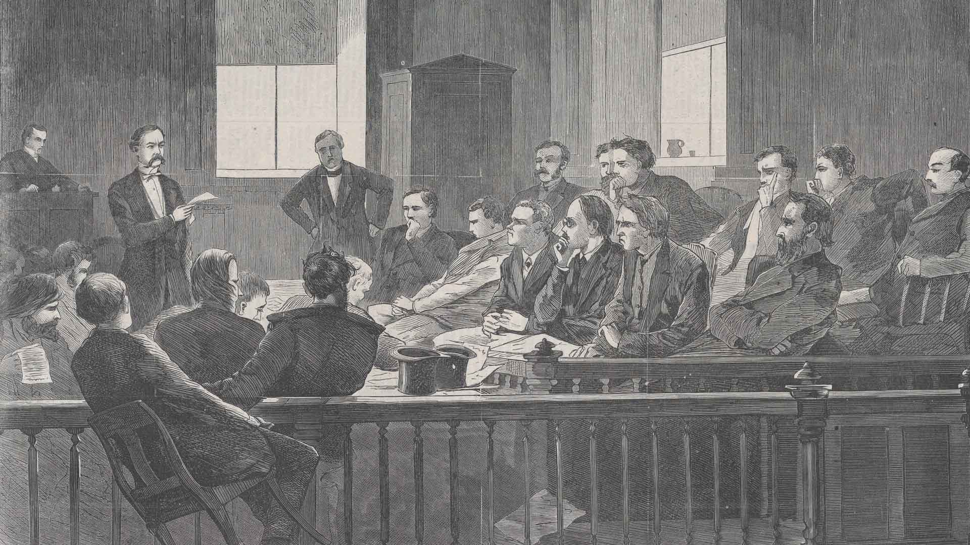 Em 21 de dezembro de 1833, Joseph apresentou uma queixa criminal contra Hurlbut no escritório de John C. Dowen, Juiz de Paz em Kirtland. Cerca de uma semana depois, o juiz Dowen emitiu um mandado para Hurlbut ser preso e comparecer perante o juiz William Holbrook, perto de Painesville4. Hurlbut foi levado perante o juiz Holbrook em 4 de janeiro de 1834, mas a audiência foi adiada para 13 de janeiro. Assim, a audiência durou três dias, durante os quais foram apresentados depoimentos de dezesseis pessoas, a maioria delas fornecendo evidências de que as ameaças de Hurlbut constituíam agressão, sob a lei do estado de Ohio.5