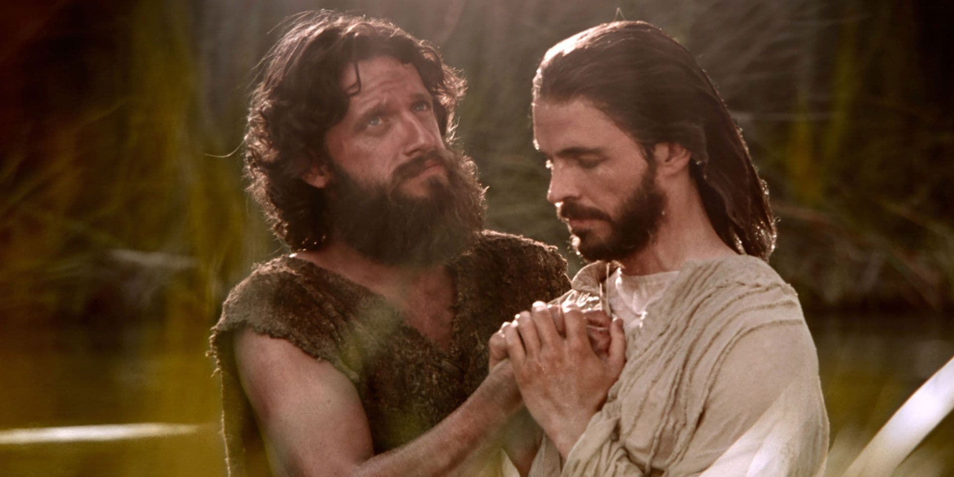 João batizando Jesus, por Harry Anderson. Imagem via Biblioteca de Mídia do Evangelho.