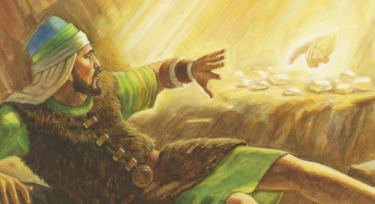 | "ele [levou as pedras] em suas mãos ao cimo do monte" (v. 1) |
