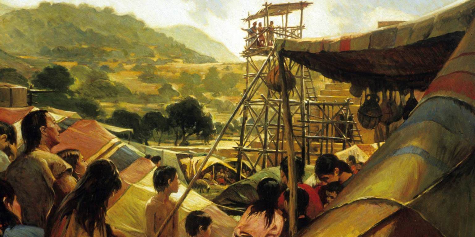 Após a proclamação do rei Benjamim, seu povo veio de toda a terra de Zaraenla para se unir e subir1 ao templo e ouvir as palavras de seu rei (Mosias 2:1). Enquanto se reuniam ao redor do templo, as pessoas armaram tendas para suas famílias, todas com a porta aberta voltada para o templo. O povo permaneceu em suas tendas enquanto ouvia o rei Benjamim falar (Mosias 2:5-6).