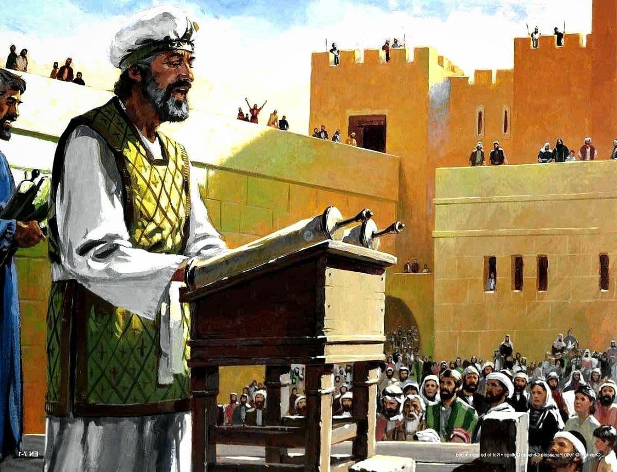 Como Schaper observou, "textos escritos […] forneciam a base sobre a qual os israelitas alfabetizados 'interpretavam' textos em ocasiões significativas".5Schaper sugeriu que Neemias 8 é um bom exemplo desse princípio.6 Neemias 8:1-3 diz que todo o povo se reuniu e Esdras "leu nele […] perante homens e mulheres, e os que podiam entender, e os ouvidos de todo o povo estavam atentos ao livro da lei". Deuteronômio 31:11, da mesma forma, observa que todo o Israel (homens, mulheres e crianças) foi ordenado a ir uma vez a cada sete anos à casa do Senhor para ouvir todo o livro de Deuteronômio lido "diante de todo o Israel aos seus ouvidos".
