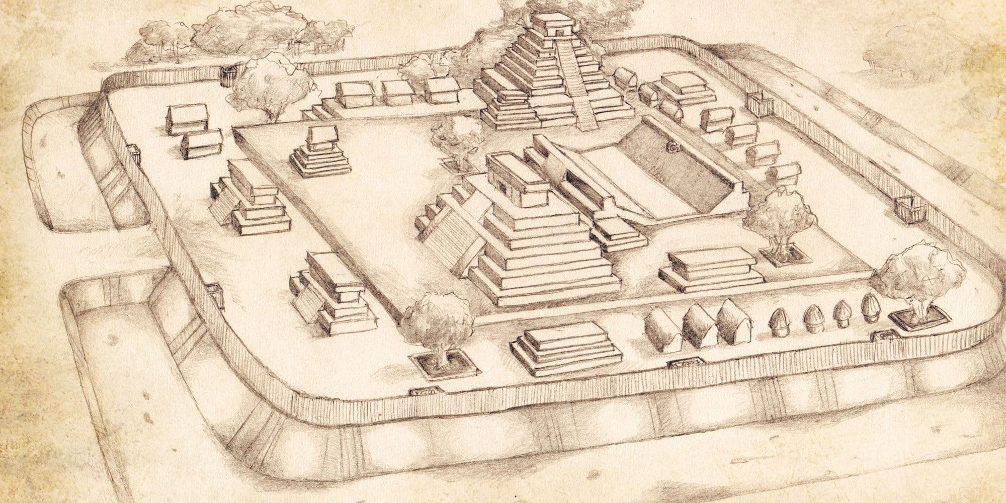 Fortificações de natureza semelhante são conhecidas entre muitas culturas antigas, incluindo algumas na América pré-colombiana.4 De acordo com Ross Hassig, "durante o Período de Formação Tardia", também chamado de Período Pré-Clássico Tardio, "a sofisticação geral da guerra na Mesoamérica aumentou".5 Isso naturalmente "impulsionou o desenvolvimento da arquitetura defensiva" durante esse período.6 [caption id="attachment_5009" align ="aligncenter" width = "800"] Obras de Timpers do
